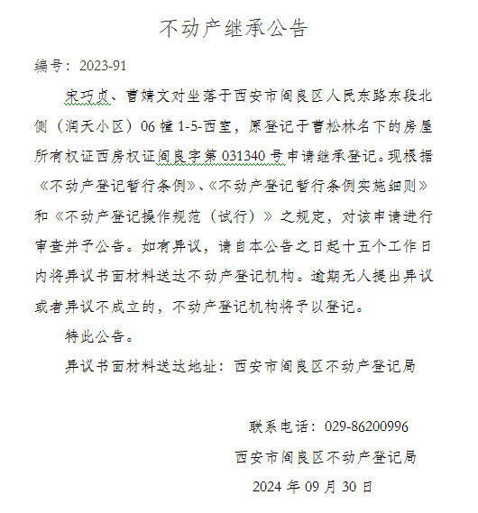 不動產繼承公告 編號:2023-91