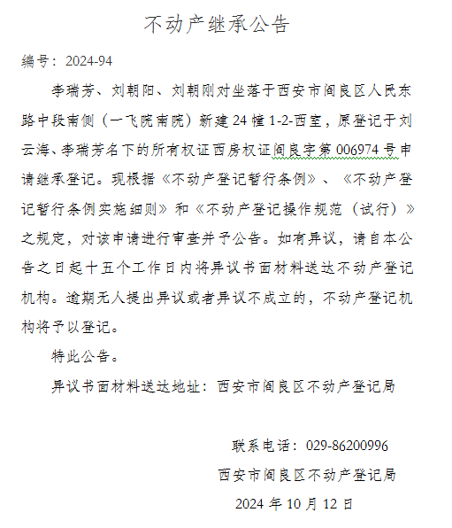 不動(dòng)產(chǎn)繼承公告 編號(hào):2024-94