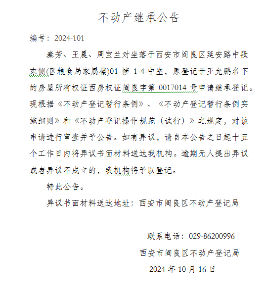 不動產繼承公告 編號:2024-101