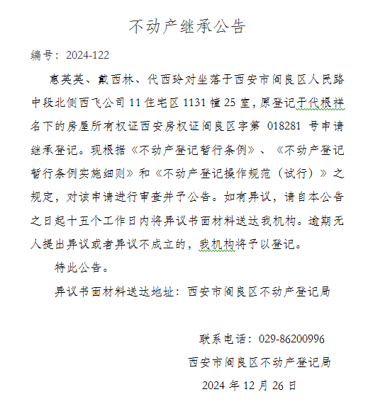 不動產繼承公告 編號:2024-122