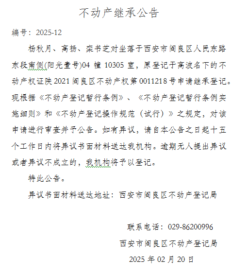 不動產繼承公告 編號:2025-12