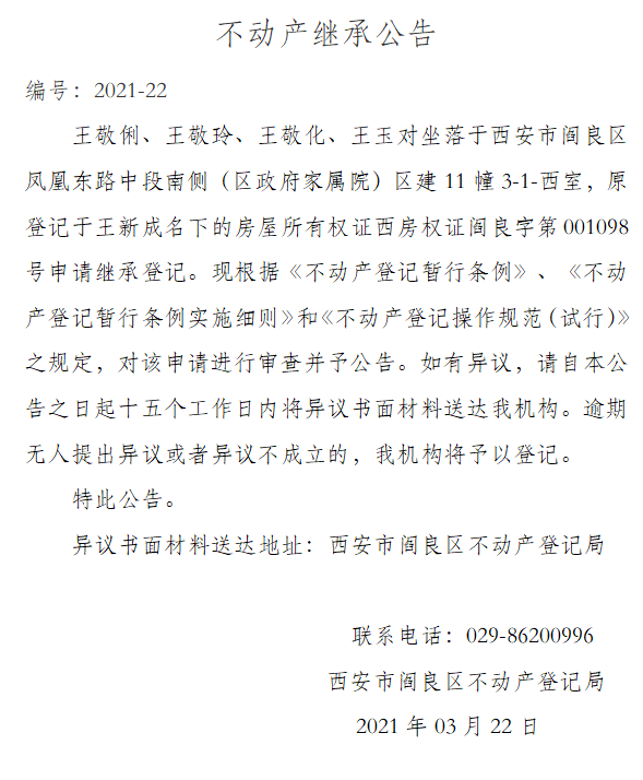 不動產繼承公告 編號:2021-22