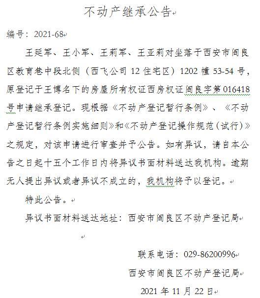 不動產繼承公告 編號:2021-68