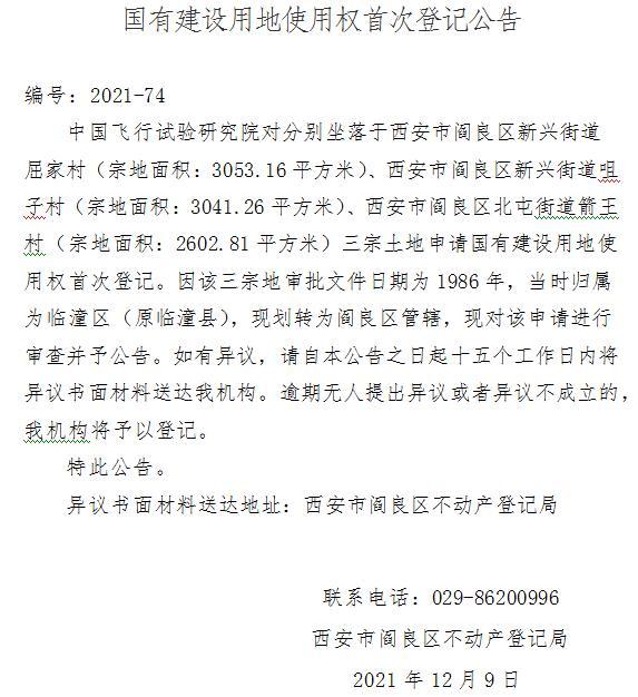 國有建設用地使用權首次登記公告 編號:2021-74