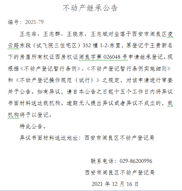 不動(dòng)產(chǎn)繼承公告 編號(hào):2021-79