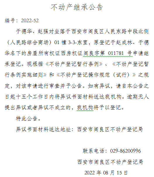 不動產繼承公告 編號:2022-52