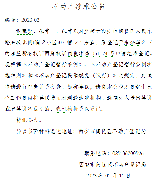 不動產繼承公告 編號:2023-02