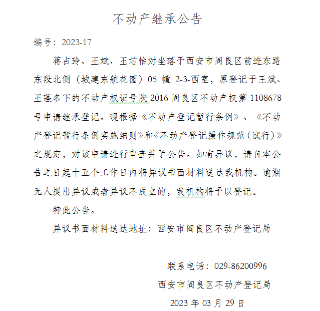 不動產繼承公告 編號:2023-17
