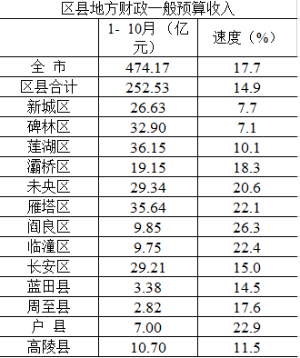 區(qū)縣地方財政一般預算收入(2014年1-10月)