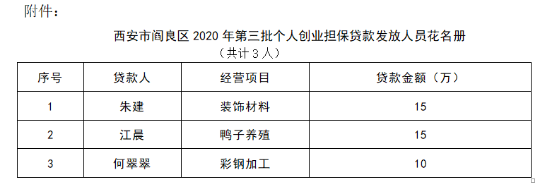 附件:西安市閻良區2020年第三批個人創業擔保貸款發放人員花名冊(2020003)