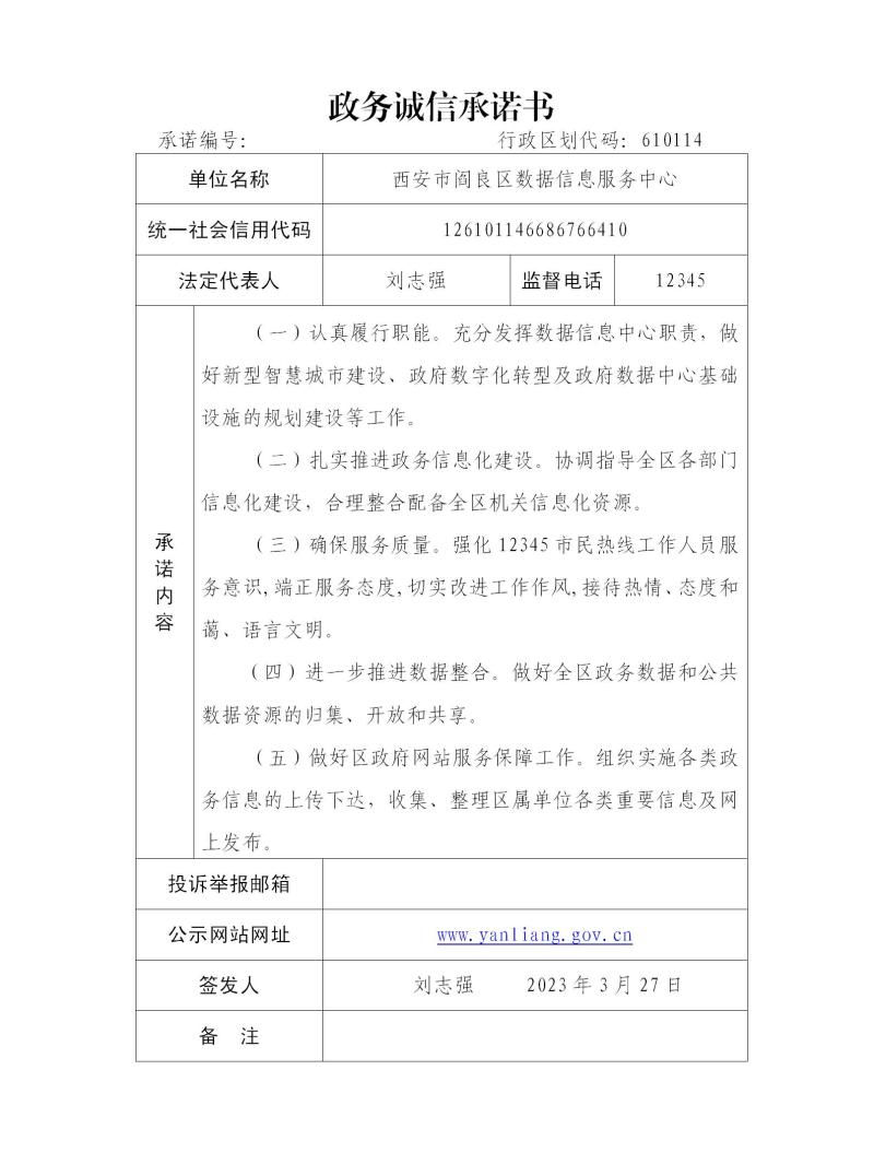 西安市閻良區(qū)數(shù)據(jù)信息服務中心政務誠信承諾書