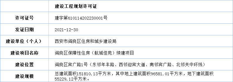 《建設(shè)工程規(guī)劃許可證》(建字第610114202230001號(hào))