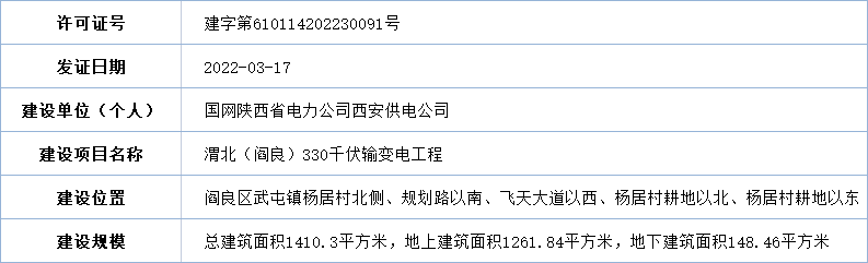 《建設工程規劃許可證》(建字第610114202230091號)