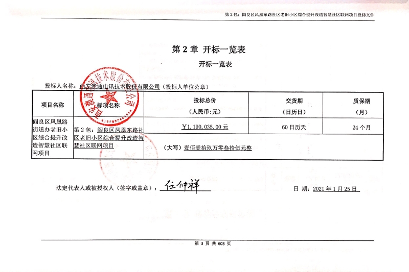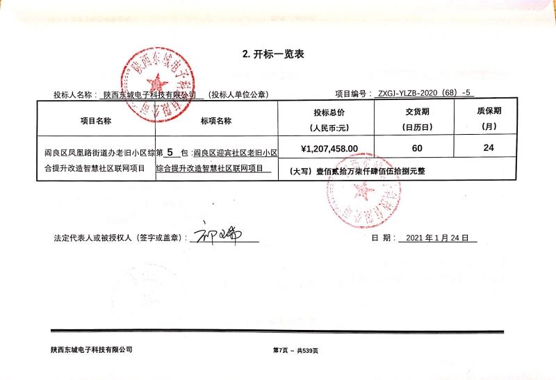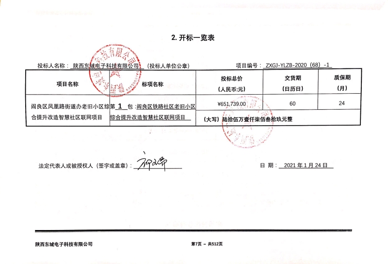 2、閻良區鳳凰東路社區老舊小區綜合提升改造智慧社區聯網項目: 17,090.00元