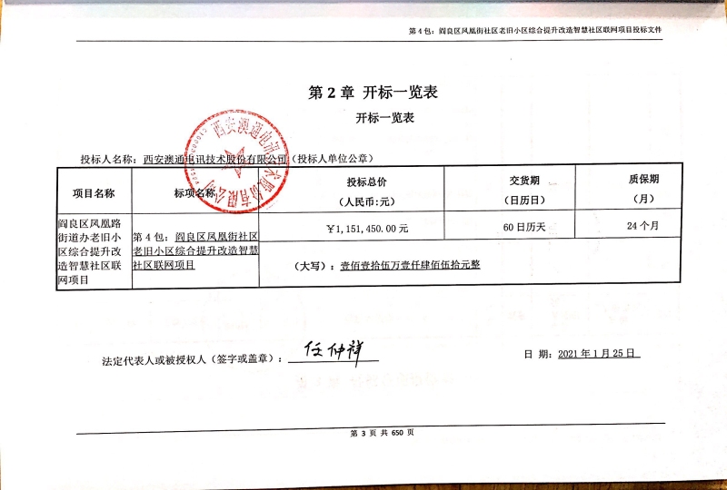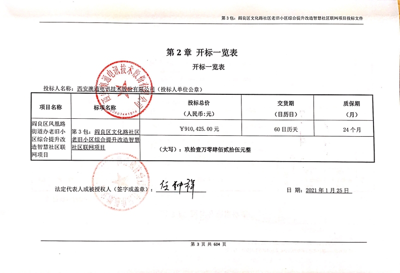3、閻良區文化路社區老舊小區綜合提升改造智慧社區聯網項目: 13,656.00元