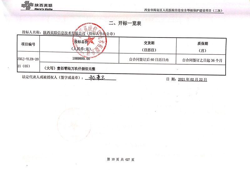 二、項目名稱:西安市閻良區人民醫院信息安全等級保護建設項目(二次)