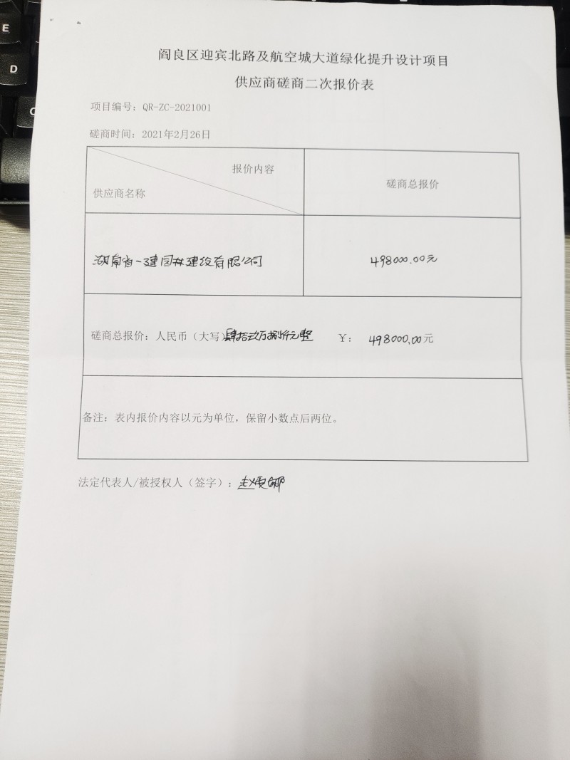 | 內(nèi)容概述 | 關(guān)于閻良區(qū)迎賓北路及航空城大道綠化提升設(shè)計項目的采購結(jié)果公告一、項目編號:QR-ZC-2021001二、項目名稱:閻良區(qū)迎賓北路及航空城大道綠化提升設(shè)計項目三、采購結(jié)果:成交結(jié)果:成交供應(yīng)商名稱:湖南省一建園林建設(shè)有限公司供應(yīng)商地址:湖南省長沙市天心區(qū)芙蓉中路三段380號匯金苑8棟501、502房成交金額:中標498,000.00元四、主要成交標的信息二次報價表.jpg五、磋商小組名單:項目名稱專家采購人代表閻良區(qū)迎賓北路及航空城大道綠化提升設(shè)計項目龐衛(wèi)紅、錢紀荃、徐航六、代理服務(wù)費收費標準及金額代理服務(wù)費收費標準:采購代理機構(gòu)參照國家計委關(guān)于印發(fā)《招標代理服務(wù)收費管理暫行辦法》的通知(計價格〔2002〕1980號)、《國家發(fā)展和改革委員會辦公廳關(guān)于招標代理服務(wù)收費有關(guān)問題的通知》(發(fā)改辦價格〔2003〕857號)規(guī)定向中標(成交)供應(yīng)商收取代理服務(wù)費。 | ||||