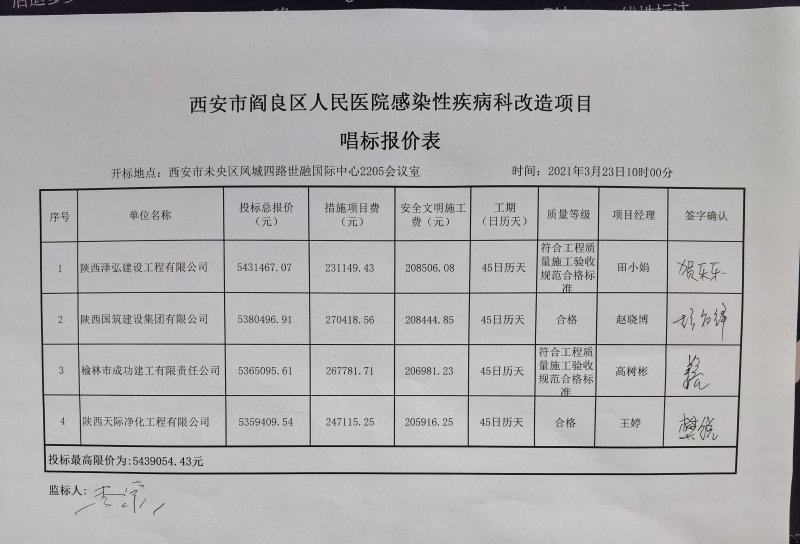 西安市閻良區人民醫院感染性疾病科改造項目結果公告