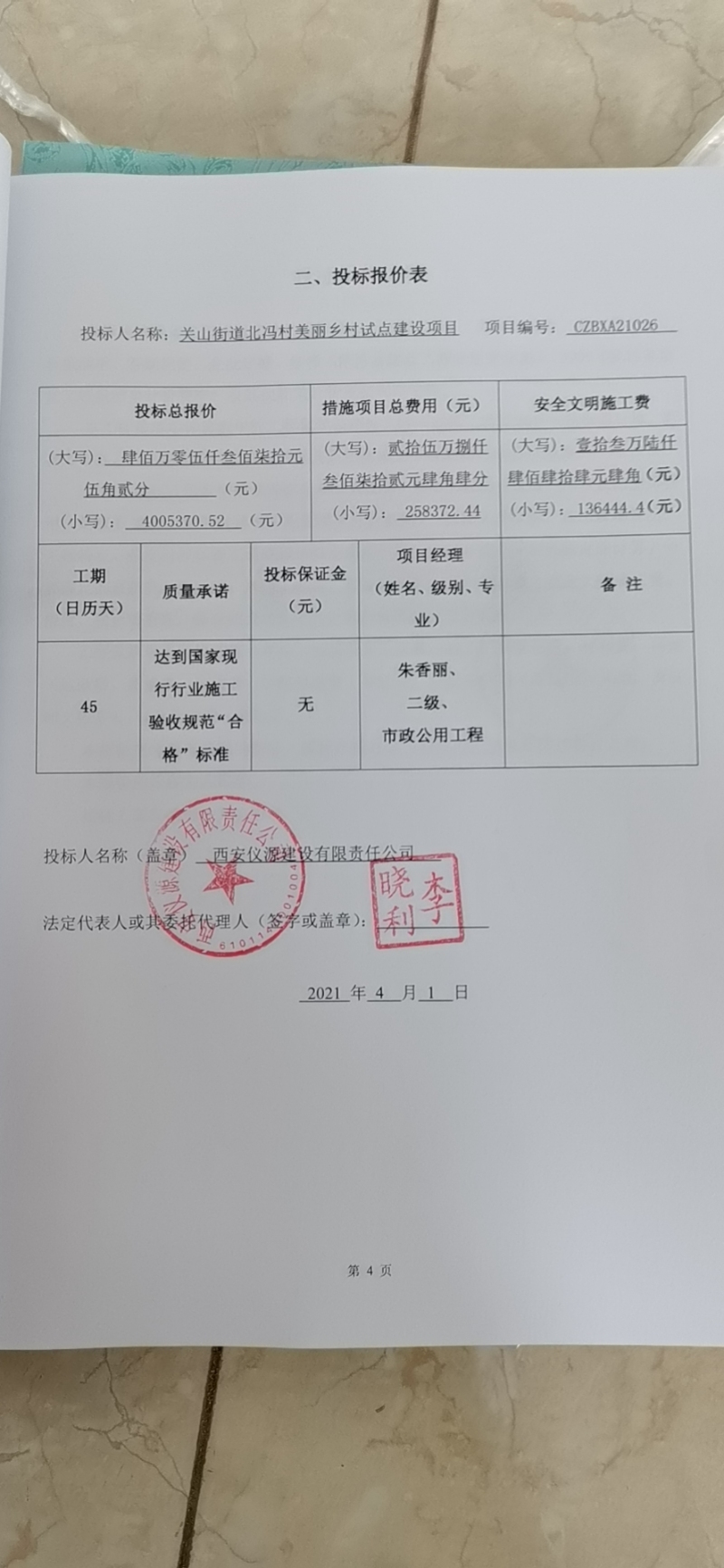 | 內容概述 | 關于關山街道北馮村美麗鄉村試點建設項目的采購結果公告一、項目編號:CZBXA-21026二、項目名稱:關山街道北馮村美麗鄉村試點建設項目三、采購結果:中標結果:中標供應商名稱:西安儀源建設有限責任公司供應商地址:陜西省西安市閻良區中標金額:中標4,005,370.52元四、主要標的信息 | ||||