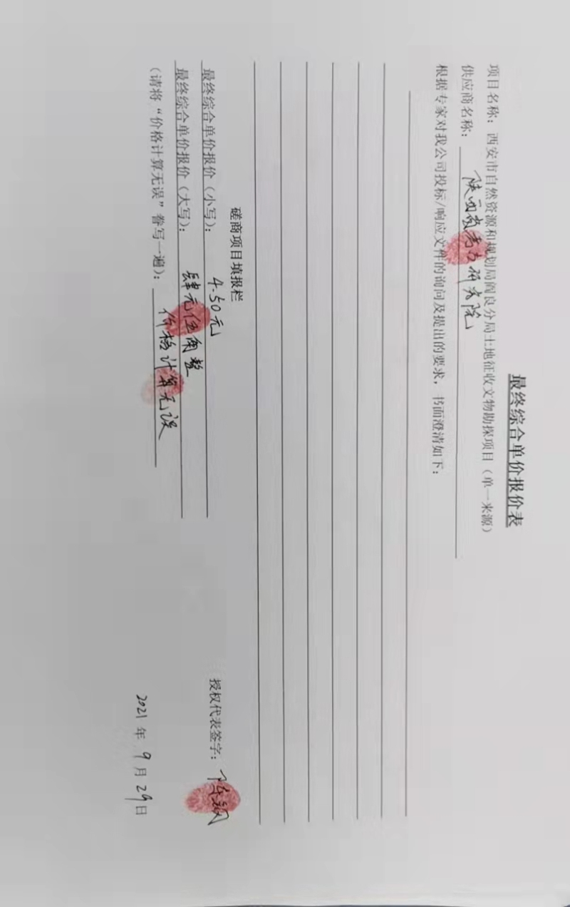 成交單位:陜西省考古研究院;成交報價:文物勘探綜合單價(元/平方米);4.50元/平方米。