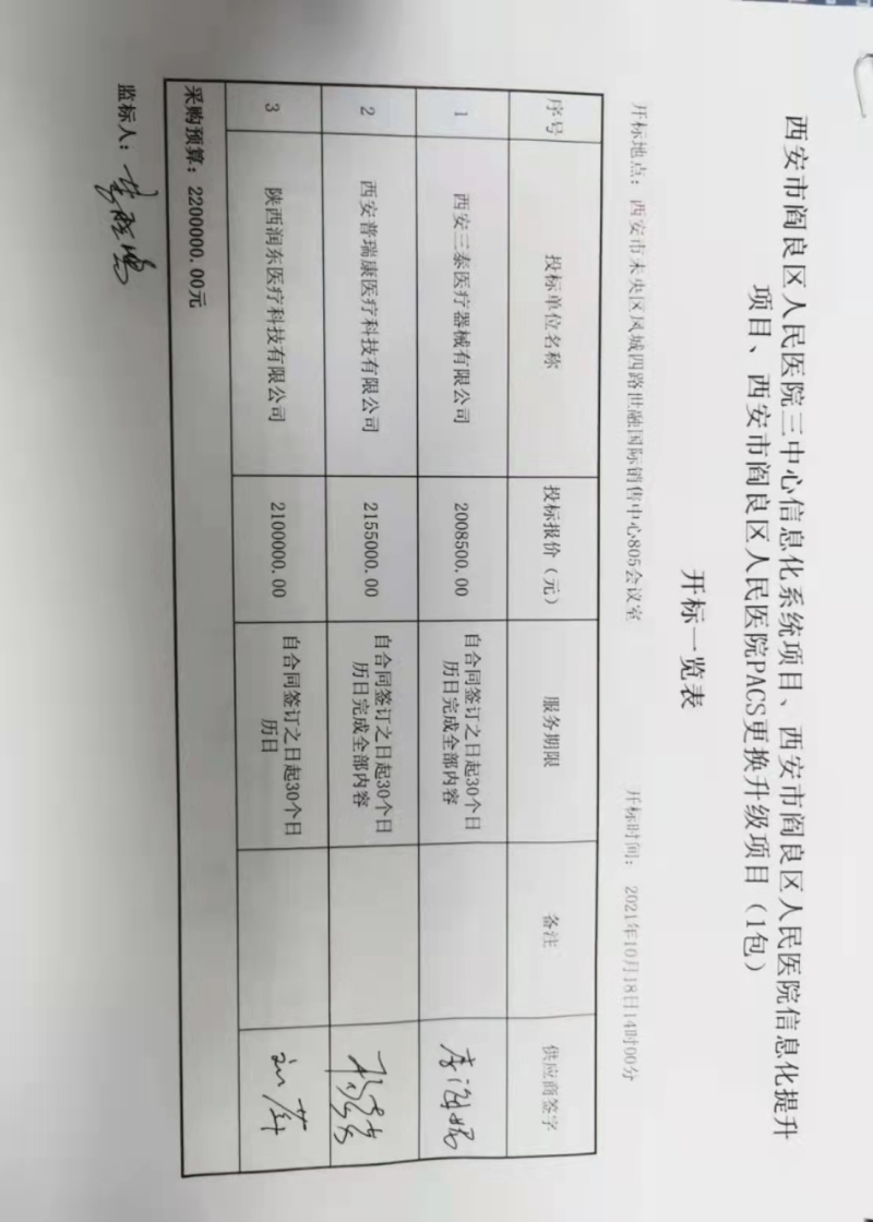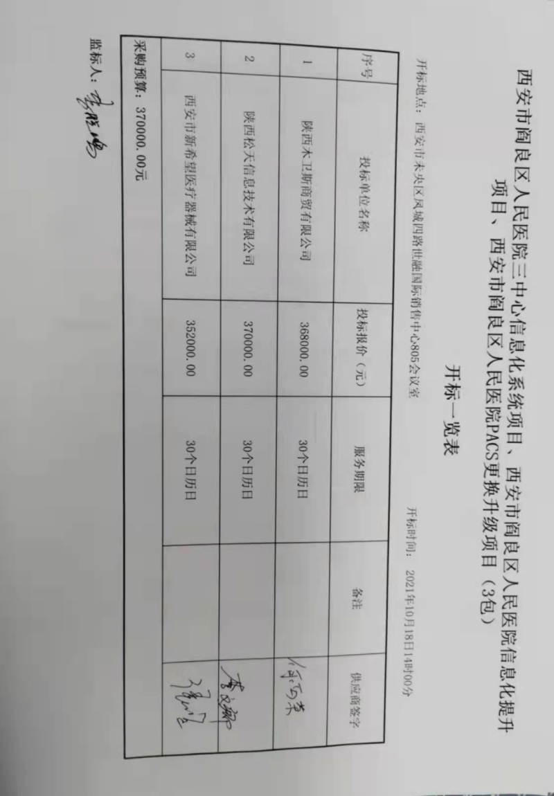 3、西安市閻良區(qū)人民醫(yī)院PACS更換升級(jí)項(xiàng)目: 5,280.00元