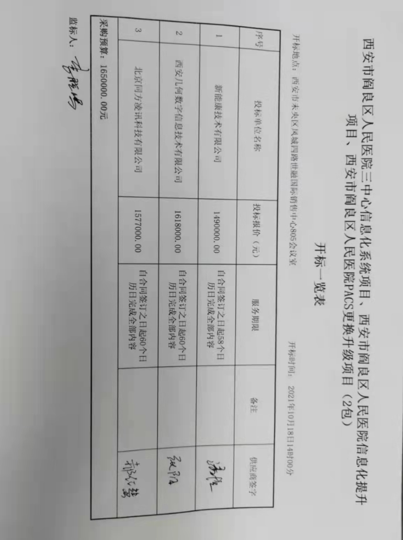 1、西安市閻良區(qū)人民醫(yī)院三中心信息化系統(tǒng)項(xiàng)目: 23,068.00元