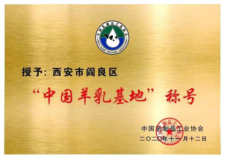 中國乳制品工業(yè)協(xié)會授予閻良區(qū)“中國羊乳基地”稱號