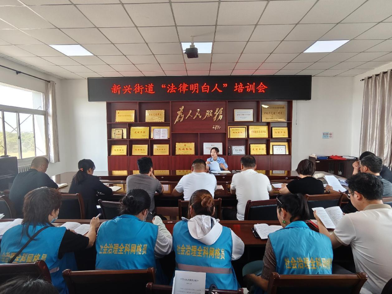 今年以來,新興街道召開每月一主題“法律明白人”培訓會議,主要圍繞習近平法治思想、《中華人民共和國憲法》、《民法典》等內容,著重從基層群眾所需所缺入手,全域“法律明白人”共培訓200余人次,極大提高了街道群眾對法治建設的知曉率和滿意度,促進了全域法治化提升。