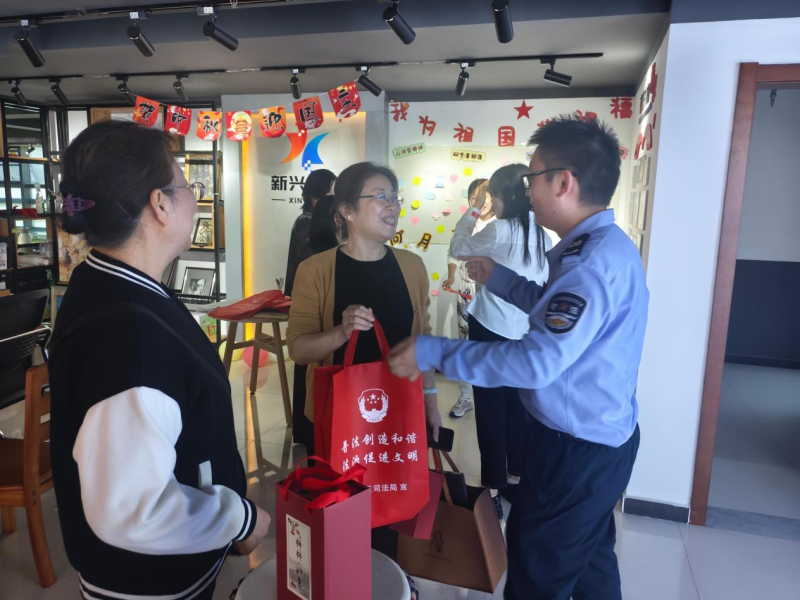 為營造歡樂祥和、法治文明的節日氛圍,充分發揮法治宣傳教育在維護社會穩定中的基礎性作用。9月25日下午,新興司法所聯合航新社區開展行動,將普法宣傳與節慶關懷相結合,開展“歡度雙節”專題普法宣傳活動。