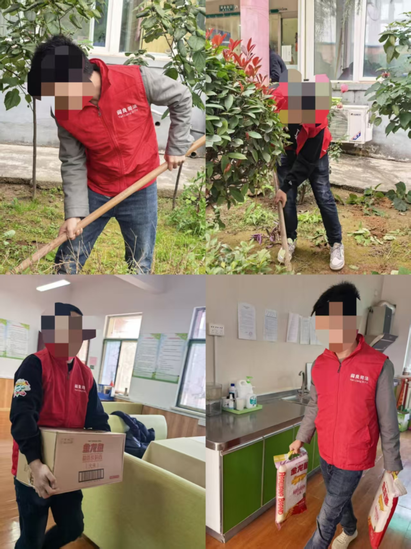 矯正對象在養老照料中心工作人員引導下分工協作:有的搬運東西,有的為花壇清理雜草。“能為爺爺奶奶做點事,心里踏實?!背C正對象邊整理雜物邊說。經過一小時忙碌,養老院走廊透亮、庭院整潔。