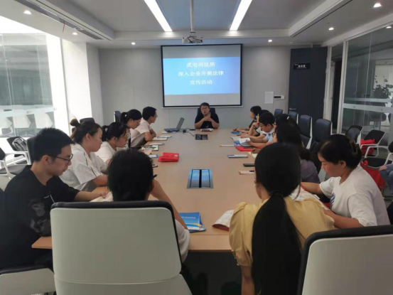 5、9月15日下午,閻良區司法局武屯司法所聯合閻良區總工會、武屯街道總工會,深入轄區五上企業,百躍集團開展普法宣傳活動。本次活動通過現場講解、座談答疑等方式,向企業職工宣傳民法典、勞動法、安全生產等法律法規知識,并向職工發放了《民法典》、《陜西省優化營商環境條例》、《知識產權實用手冊》、《西安市知識產權保護》等法律法規宣傳冊100余份,提供法律咨詢服務5人次,進一步讓知法、守法、用法觀念深入人心。