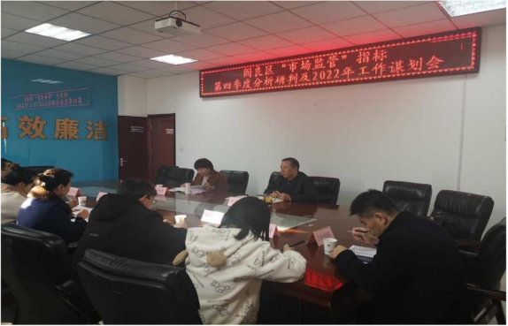 7、為深入推進深化“放管服”改革和優化營商環境工作,謀劃2022年工作思路,11月11日下午,區市場監管局牽頭組織區司法局、區科工局、區數據信息中心、區交通局、區農業農村局、區文旅局分管領導和科室負責人召開閻良區優化營商環境“市場監管”指標第四季度分析研判及2022年工作謀劃會。