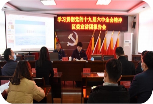 8、12月14日,按照區委安排,學習貫徹黨的十九屆六中全會精神區委宣講團在閻良區振興街道進行宣講,區委黨史學習教育領導小組巡回指導組綜合組組長董恒渭同志作學習貫徹黨的十九屆六中全會精神宣講報告,振興街道全體領導班子成員、機關各科室負責人、各村(社區)第一書記、機關黨支部全體黨員共計100余人參加了宣講。