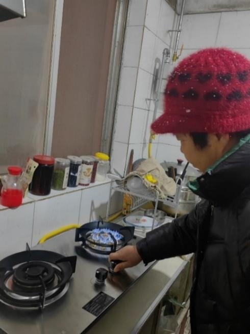 另一邊,穿著橘紅色工服的忙碌身影穿梭在村頭巷尾,在年末順利完成了武屯街道辦廣陽村通氣工作。打開閥門,隨著藍色火苗的升騰,屋里的溫度也慢慢溫暖起來,村里老人欣喜的說:“今年過年終于不用穿著厚棉襖做飯了,也不用一家人圍著煤炭爐子吃灰了!”。