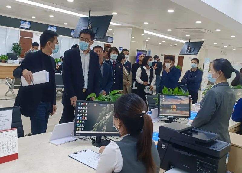 走進區政務服務中心,于海夫一行來到稅務綜合服務窗口、商事服務區、工程建設項目審批區等,查看了“好差評”系統結果反饋情況,與工作人員和辦事群眾進行交流,仔細詢問窗口工作人員接待群眾、網上辦理業務是否通暢等情況;詢問辦事群眾在辦事過程中流程是否清晰,服務是否到位,辦事是否方便快捷,并以企業辦事人員身份,模擬走流程的方式,體驗企業開辦等具體事項的辦理。